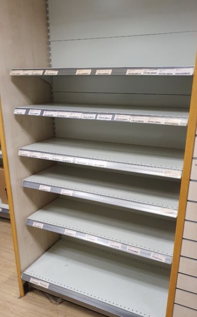 Laid out in four shelves with metal backing and footings, including a freestanding 3 metre central gondola.