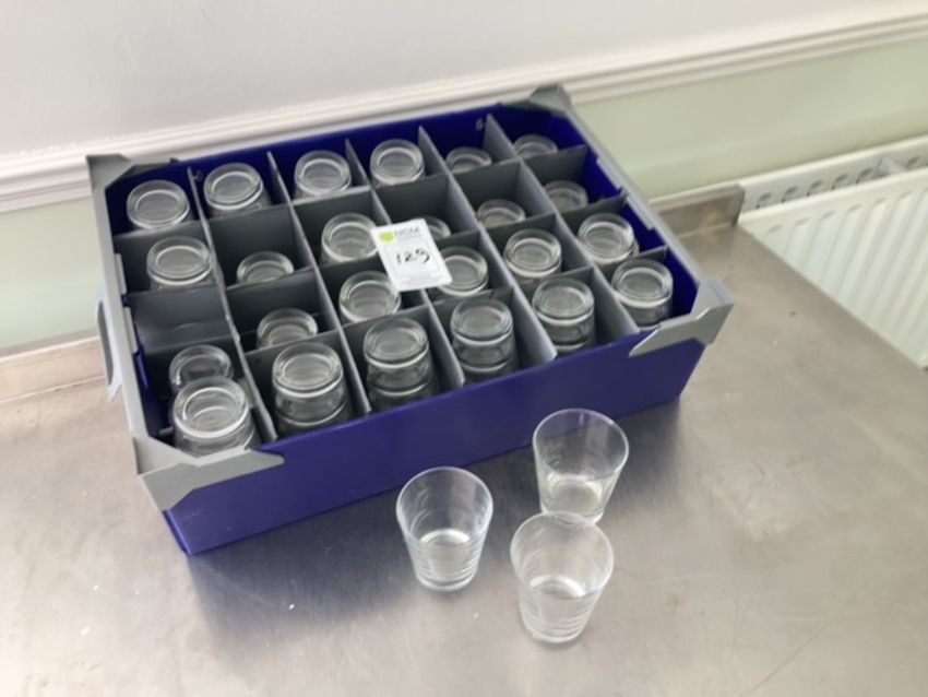 A quantity of longstem wine glasses and A mixed tray of glassware to include longstem wine glasses hi-ball glasses and tumblers and A quantity of short stem wine goblets and A tray of spirit glasses and A tray of spirit glasses and A quantity of brandy goblets This lot consists of items marked as 125, 126,127, 128, 129 and 130