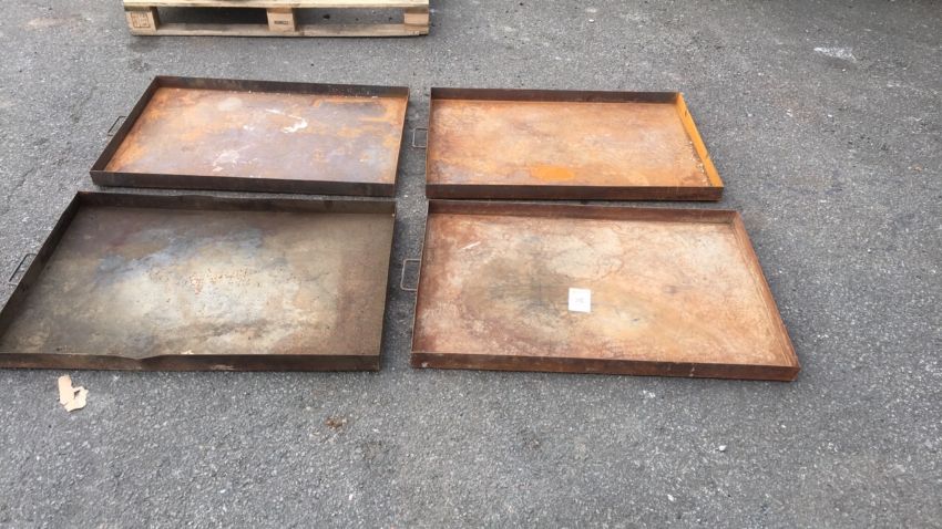 Steel 2ft x 3ft drip trip with carrying handle, in used condition, workshop, garage, site use
