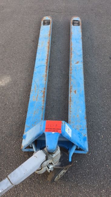 Pallet Truck 2 ton, long reach, raises & lowers, forks are bent & need some attention (A659700)