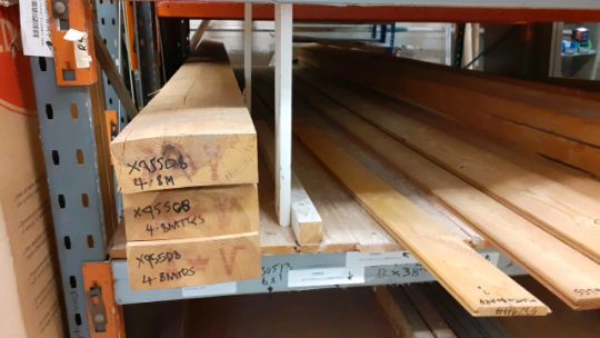 A quantity of timber boards and mouldings various woods and dimensions to include bespoke storage rack as lotted