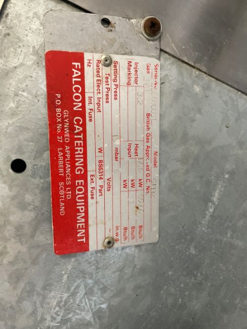 Falcon G1112 Convection Oven Model G1112 serial no E038891 double door shelved c/w stand (gas) dimensions 90cm W x 85cm D x 75cm H