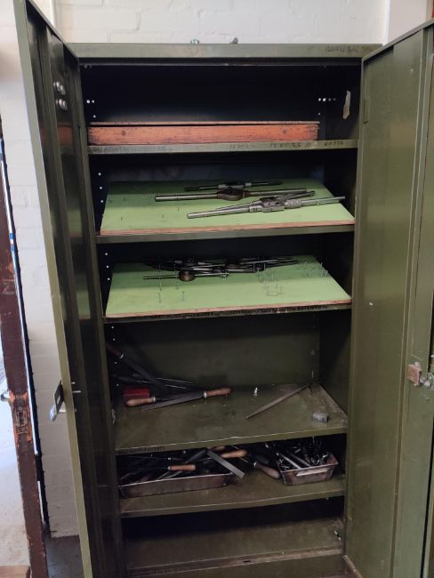 Thread cutting taps & dies. Includes the steel cupboard.