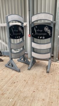 A quantity of show jump poles and stands various Both timber and plastic construction As lotted
