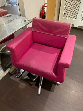 Hairdressing Station Includes Mirror , shelf , footrest & pink leather look swivel chair location eden boutique