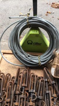 Dee Dee Hamburg lashing Turnbuckles, 20mm tread, closed length 460mm, open length 725mm, qty 26. Approximately 50m x 16mm steel bonding/lashing rope & approximately 16mm cable grips