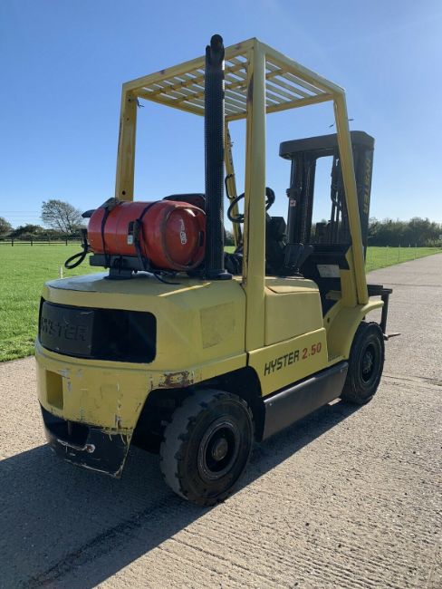 Hyster forklift truck. 2.5 tonne lift. 5416 recorded hours. 4.4 container specification mast with side shift services.