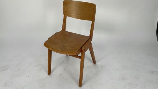 School chair - old style - brown - 80cmH - 44cmW - 52cmL. All measurements apox.