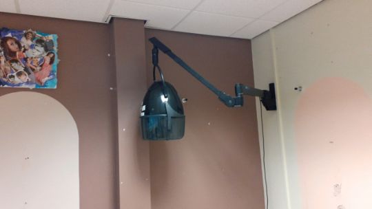 Elan Elite hood dryers on articulated arms x 4 Wall mounted - buyer to remove from wall.