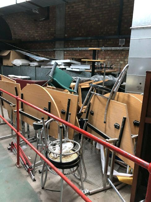Contents of plant room to include desk, chairs, bonquet seats Please be aware this item is on the top floor, will need carrying down at least 2 flights of stairs before access to a service lift