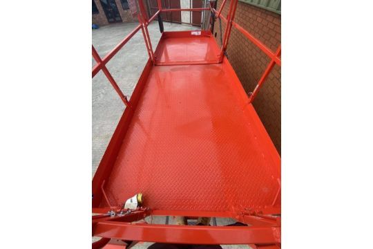 Here we have a Skyjack SJ6832RT rough terrain scissor lift for sale. This is a 2007, It has only done 731 hours!!, rough terrain (4x4), jack legs. This lift has been well maintained and has just had a full respray and looks like new. Comes with a 3 cylinder Kubota Diesel engine that starts and runs perfect, extending slide out deck, drop down rails.