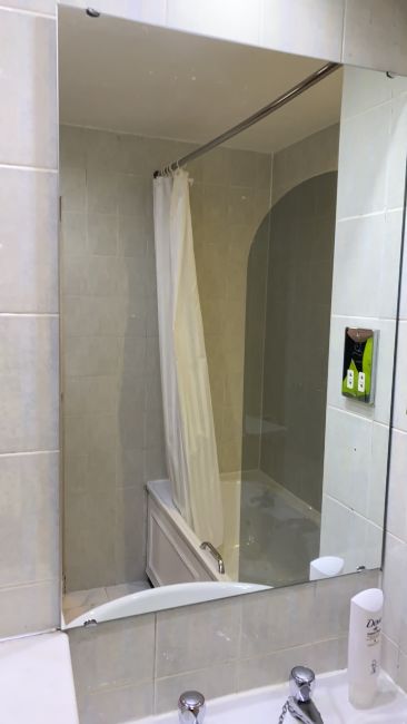 Entire contents of bathroom ,sink, shower pole and curtain handrails tissue dispenser and mirror, disability friendly shower seating, includes curtains and 1x landline telephone