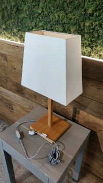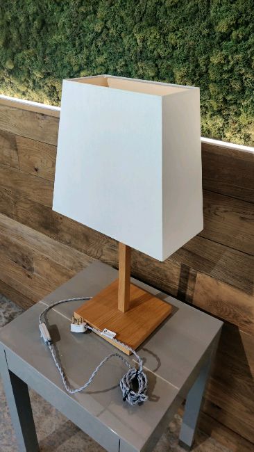 Bedside lamp Square based wood effects in colour, with cream lamp shades