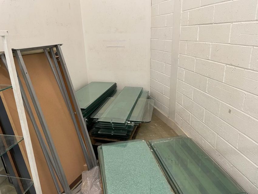Pallet of glass shelves x3
