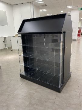 Retail dual sided display unit. Approx h x 162cm w x 121cm d x83cm