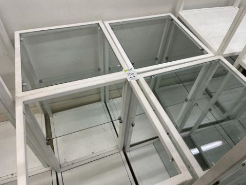 White MetalDisplay Shelves with Glass x4 Measurements Approx H85 W50 D50
