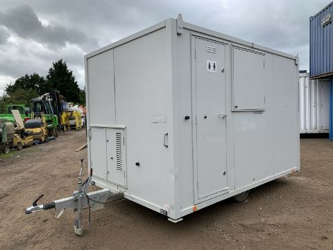 1 x AJC Towable Welfare Unit. As seen in photos. Fitted with LED lights, plug sockets, heaters, sinks, hot water boiler. 1 x Toilet. 1 x Diesel generator. It has a set of ECO battery banks that powers the unit the majority of the time until they get low, the diesel generator then starts and produces power until the battery’s have reached the charged point, this system powers the unit for low emissions. A hydrualic system lowers the whole unit to the ground for anti theft.