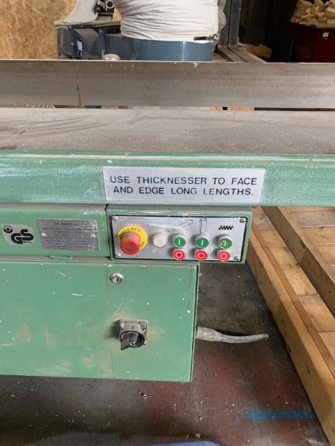 Power fed surface planer which can plane and edge in one pass. Power fed thicknesser which can thickness the face and edge of the board to complete the four sides planed in one pass to a maximum of 300mm x 100mm finished section.