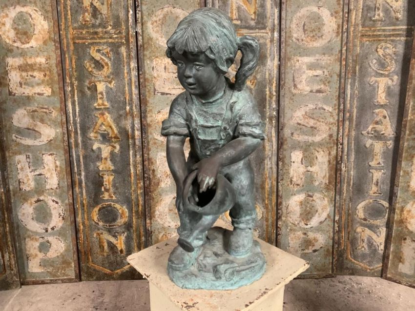 CAST BRONZE FIGURE DEPICTING A GIRL POURING WATER