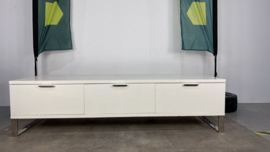 White TV Stand with Chrome Legs X3 Drawers