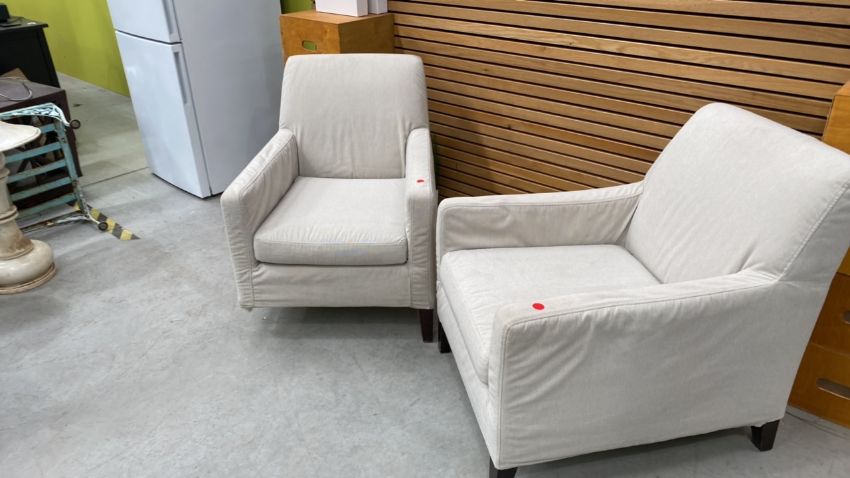 Set Of Two Cream Upholstered Armchairs