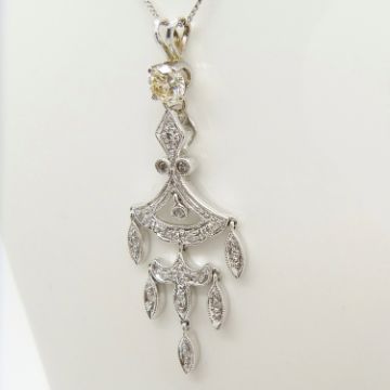 Diamonds: natural; 1 x round brilliant-cut, 17 x round-cut; 0.50 cts otal approx; I-K / good SI approx. Pendant: chandelier style; length: 36mm. Necklace: curb links; bolt ring clasp; 45cm long. With gift box