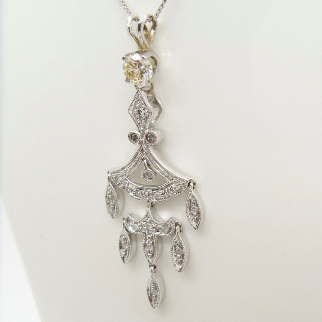 Edwardian inspired 0.50 carat diamond necklace in white gold, boxed