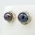 Black pearl and diamond rosette earrings in 9ct yellow gold, boxed