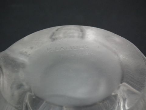 René Lalique clear and frosted with signs of some light blue staining to glass 'Trois Papillons' Inkwell with some signs of light blue staining. Moulded and engraved makers mark, 'R. LALIQUE FRANCE'. Book reference: 'R. LALIQUE Catalogue Raisonné De L'Oeuvre De Verre', by Felix Marcilhac. Les Editions De L'Amateur. Figure 426.