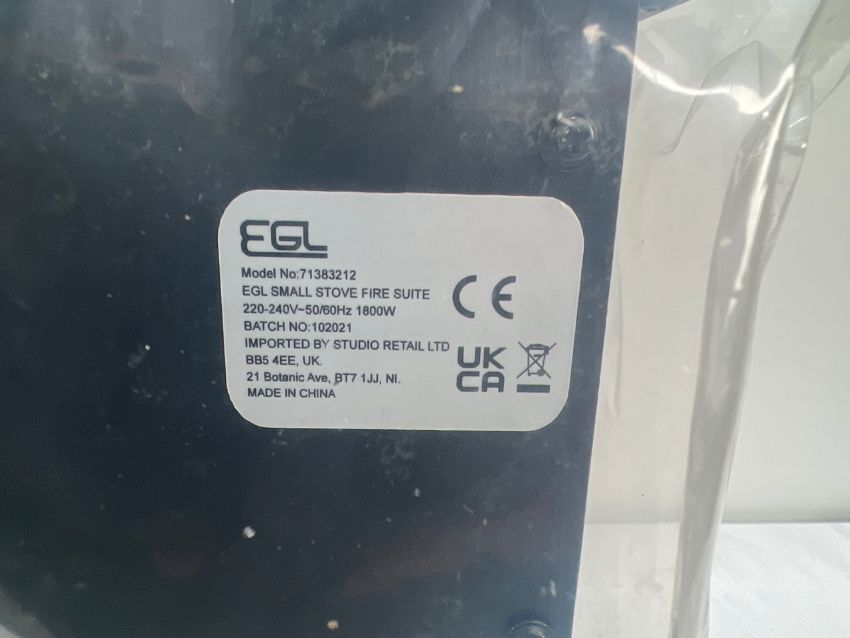EGL SMALL STOVE FIRE SUITE 7674262 This product is untested by NCM Auctions and therefore may not work and/or have parts missing. Please be aware that this product is a customer retail return. The reason for customer returns can vary from faulty, failed delivery, incorrect item/s ordered, change of mind,  Damaged or broken.  Viewing is available on all items is advised and recommended.  Delivery only on smaller items (under 11 kilos) Larger items are collection only.  If the lot description doesn’t specifically state Collection only. The item is delivery only. Delivery is charged at: Small parcels (under 7 kilos)  £8 per lot.  Medium Parcels (Under 10 Kilos) £11 per lot. Additional items are significantly discounted and charged at £2 per additional small parcel and £4 per additional Medium Parcel.  Delivery charges are added to your invoice once the auction has closed. Larger items are collection only and will be stipulated in the lot ‘collection only’ if the lot you are bidding on doesn’t state collection only. Delivery will be charged.   Northern Ireland, Scottish highlands and offshore will incur additional charges to the delivery stated. Please note winning bidders’ items will be posted to the registered address used when bidder registration. If you require delivery to a different address, you must either update your bidder registration details prior to auction close or re-register using the correct delivery address. Amendments to delivery address cannot be actioned after auction close.