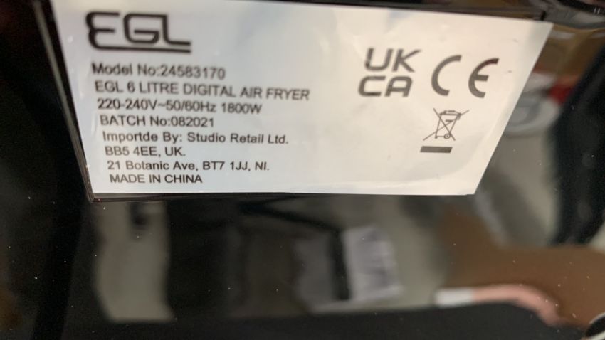 EGL 6 LITRE DIGITAL AIR FRYER 7277829