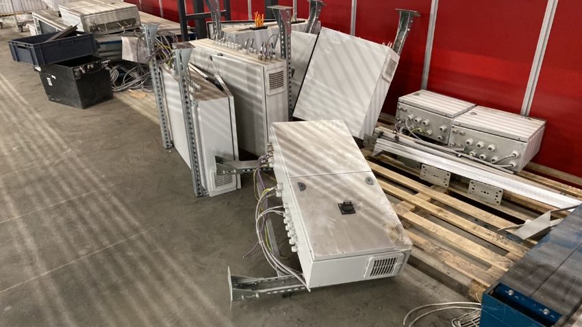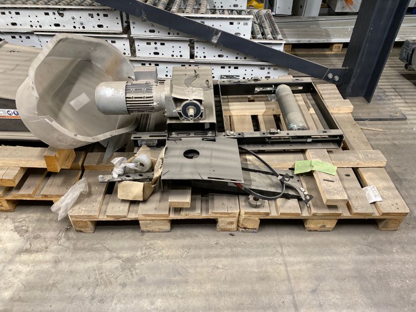 X8 Dematic Interroll Automation 45 degree conveyors, gravity fed roller conveyors (various lengths), X2 motorised LAC buffalo board conveyor, X1 SEW SA47 spare motor, X3 NORD Systems Gear motors, spare belt, X2 45 degree roller conveyors, X5 motorised Dematic Comveyors, various Knapp electrical boxes as shown, and X4 Stober C302N0027ME40 motors