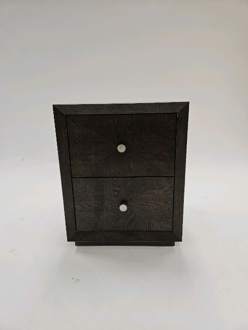 Modern Bedside TableSigns of wearx2 drawers, veneered woodApproximate Dimensions:Height - 63cmWidth - 50cmDepth - 45cmLocation - 9-E6-1