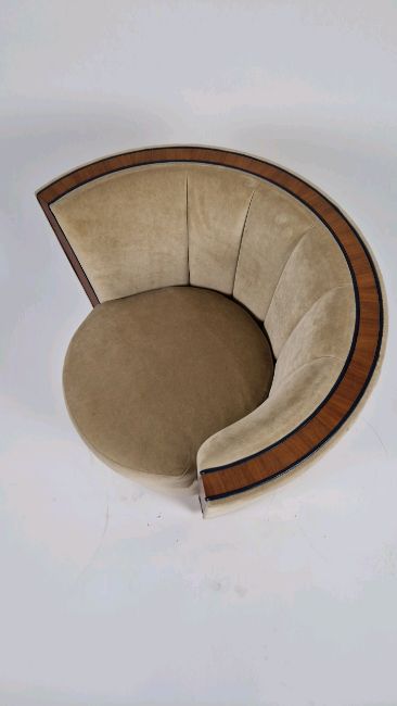Bespoke Deco Tub Chair Made for Claridge's by David LinleyInspired by the Art Deco movement of the 1920's, the Deco Tub Chair has been a popular member of LINLEY's upholstery range since it was first introduced in 2001.Stock images for illustrative purposes onlySome signs of general wear and damage on chair baseWooden frame Approximate Dimensions: Height - 73cm Width - 79cm Depth - 65cm Location - 9-J3-1