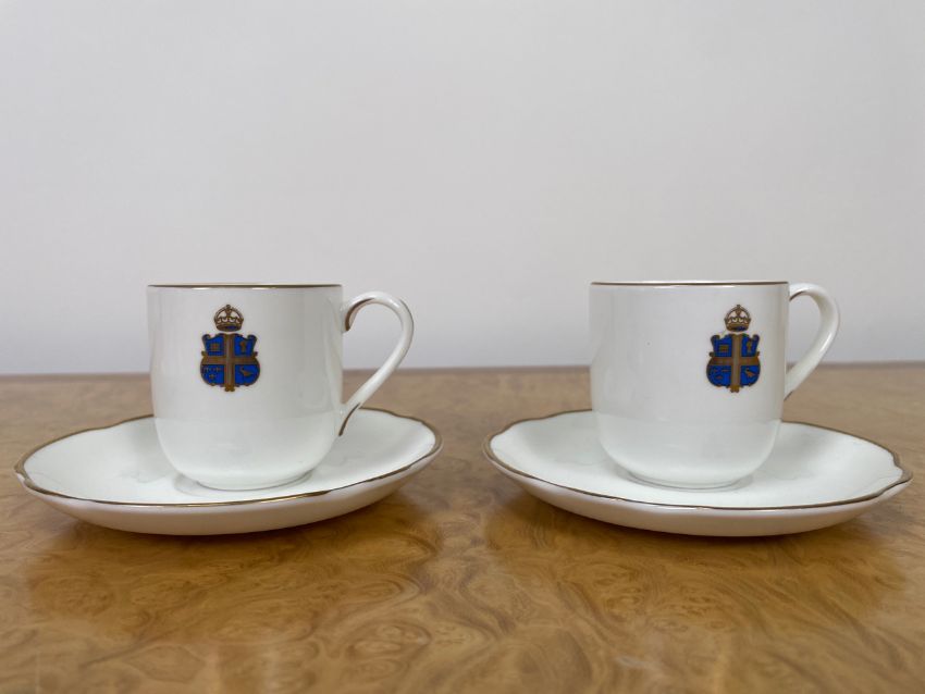 { Option of lots: 274, 275 } Set of Crested Crockery for Claridge's by Chommette 1884 to include:  8 x 31.5cm plates 8 x 25cm plates 8 x tea saucers 8 x coffee saucers 8 x soup dishes 1 x large milk jug 1 x medium milk jug 1 x small milk jug  All crockery is unused and images are for illustration purposes and not the exact items in the lot.