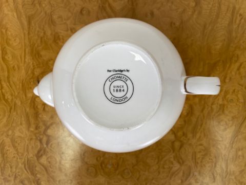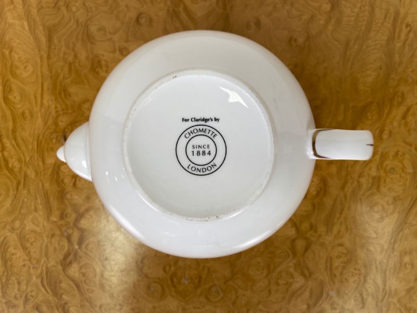 { Option of lots: 629, 630, 631 } Set of Crested Crockery for Claridge's by Chommette 1884to include: 4 x 31.5cm plates4 x 25cm plates4 x 18cm plates4 x tea saucers4 x coffee saucers4 x soup dishes4 x tea cups4 x espresso cups1 x large milk jug1 x tea pot1 x butter dish1 x double handed sauce potAll crockery is unused and images are for illustration purposes and not the exact items in the lot.