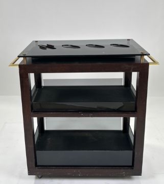 Two Tier Serving Trolley on WheelsSigns of general wear Wooden frame Metal handlesGlass TopApproximate Dimensions:Height - 95cmWidth - 95cmDepth - 60cmLocation - 9-C13-1