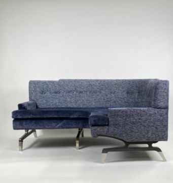 Bespoke Ben Whistler Sofa Made for The Berkeley Blue Bar Commissioned by Robert Angell DesignStock image is for illustrative purposes onlySigns of wear as shown Velour vision with fabric surround and leather lining Solid wooden frame Approximate Dimensions: Height - 82cm Width - 165cm Depth - 115cm Location - 9-H3-1