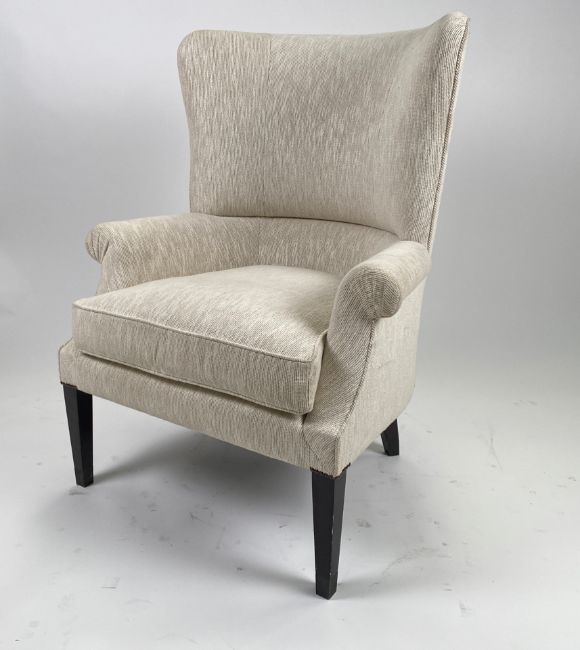 Barrel Back Wing ArmchairSigns of general wear and use Bridge fabricWooden feetApproximate Dimensions:Height - 112cmWidth - 77cmDepth - 70cmLocation - 9-I7-2