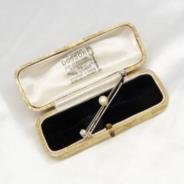 Original antique Victorian fine quality pearl and old-cut diamond bar brooch.