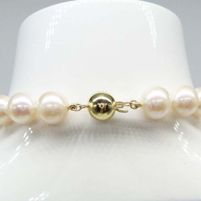 Freshwater cultured pearl necklace with yellow gold ball clasp.