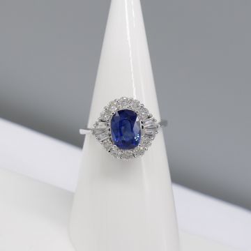 Certificated 18ct white gold sapphire and diamond cluster ring, with certificate