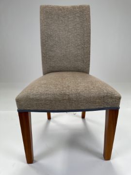 Beige Fabric ChairIn good condition. It would benefit from a clean otherwise offered in good condition. Beige fabric Wood frame, wood legs Approximate Dimensions:Height - 102cmWidth - 56cmDepth - 52cmLocation - A3-2