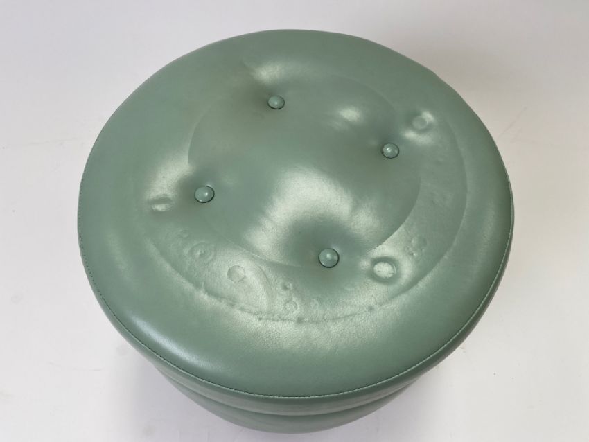 Pair of Teal Leather Lounge Chairs with Pouffes  Velour backX1 Pouffe Showing a little age related wear and use Oak frameApproximate Dimensions;Height - 80cmWidth - 79cmDepth - 73cmLocation - L7-2 Heathrow