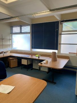 Content of the office to include:2 x Mobile Office Chairs 2 x Four Drawers Filing Cabinets 3 x Various Pedestals Shelving 3 x Matching BlindsOffice Desks, etc.Some Sign of General Use.Please note this lot is Buyer to Remove.