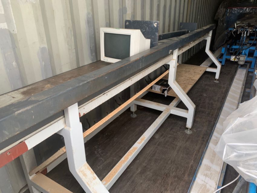 - 1no. K STROJ MITEK Posistrut fabrication line, main unit in container, some runners and rails stored external in wrap.