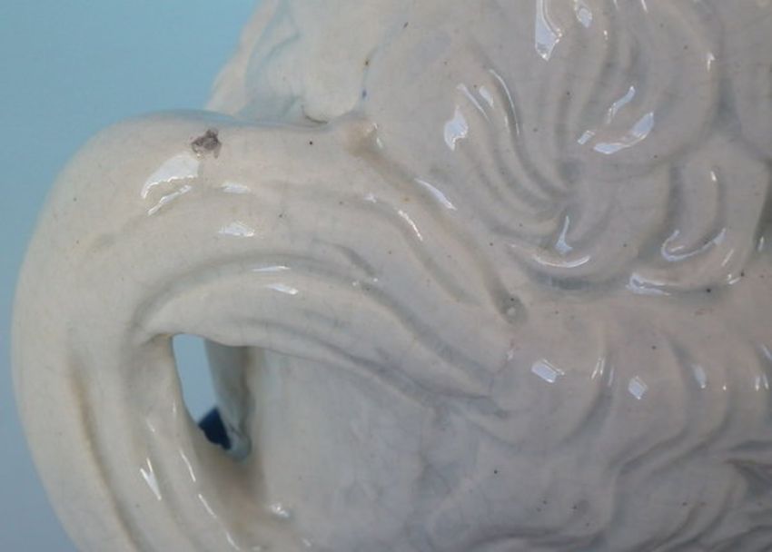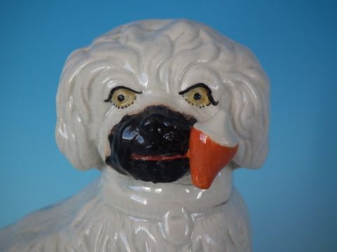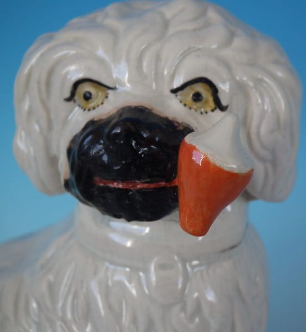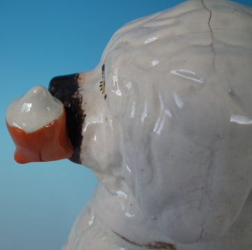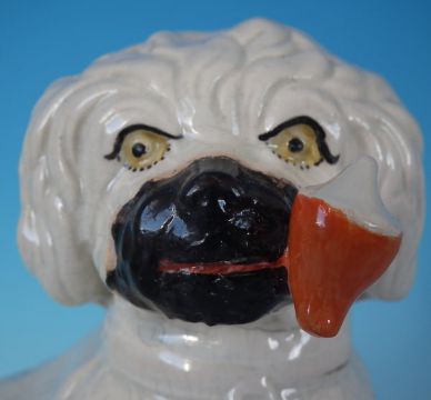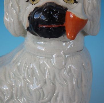 Staffordshire Pottery pipe smoking spaniel on blue base
