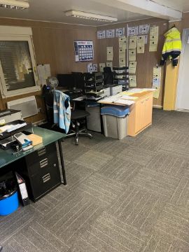 Ideal for a quick office setup or can be used as storage space. Cabin dimensions are 39ft x 24ft (12140mm x 7340mm) with height of 3280mm and an in inside height of 2330mm. The front office measures 5855mm x 7135mm and the back office measures 5860mm x 4695mm. The kitchen measures 2230mm x 2240mm, private office measures 3500mm x 2240mm.