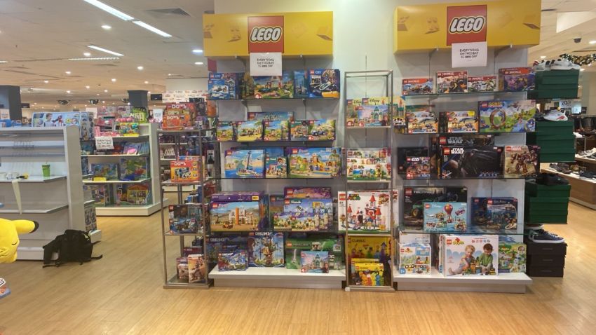 4x glass wall mounted shelves and 2 x display plinth + 2x lego advert hoardings