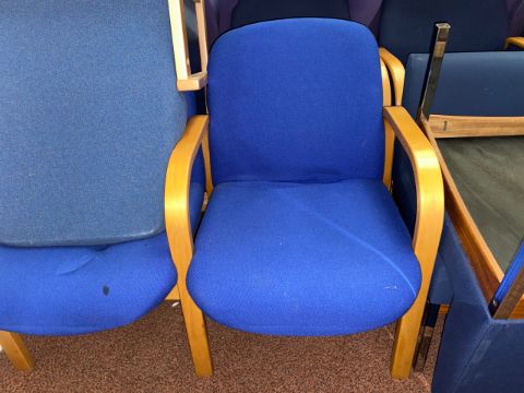 Mix Of Blue Lounge Chairs With Wooden Arms x12